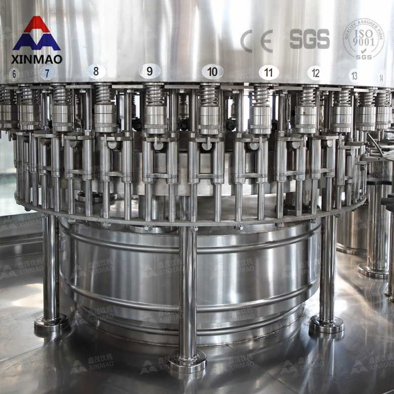 4、PET瓶純凈水灌裝機(jī)灌裝方式:采用新型的微壓灌裝,使灌裝速度更快更穩(wěn)定,所以與同規(guī)格的機(jī)器相比本機(jī)產(chǎn)量更高,效益更大。