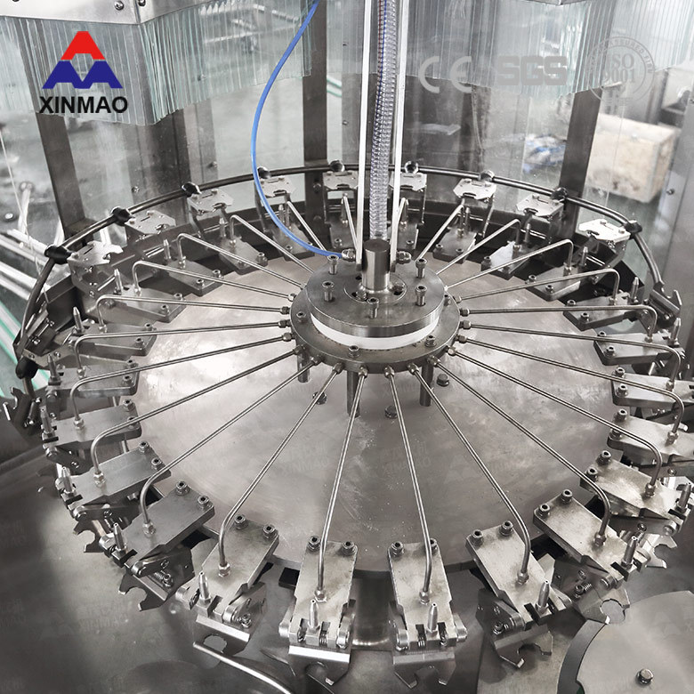 2.沖洗瓶口采用先進(jìn)的卡瓶頸技術(shù),避免與螺紋口的接觸,更衛(wèi)生,瓶子的輸送全部采用卡瓶頸技術(shù),變換瓶形無(wú)需調(diào)整高度,只需變換瓶身直徑相關(guān)的護(hù)板。