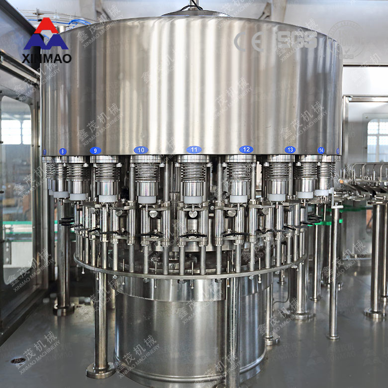 鑫茂飲料機(jī)械廠家專業(yè)制造的三合一礦泉水設(shè)備將沖洗、灌裝、封蓋三個功能組合在一個機(jī)體上,適用于聚脂瓶灌裝礦泉水、純凈水、飲用水等不含氣水灌裝飲料。