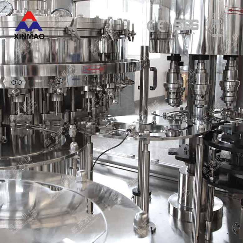 鑫茂機(jī)械廠家制造供應(yīng)的三合一碳酸飲料設(shè)備將沖洗、灌裝、封蓋三功能組合在一個(gè)機(jī)體上,全過程實(shí)現(xiàn)自動(dòng)化,碳酸飲料設(shè)備適用于灌裝可樂、雪碧、含氣飲料等含二氧化碳?xì)怏w的飲料。